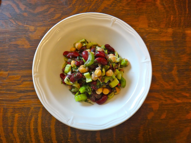 I’ve still got a LOT of dill (and chives) from the CSA… And they keep giving me more each week… So I’ve got to come up with more ideas! This time, a nice, light summery bean salad with a dill dressing. Mega easy!