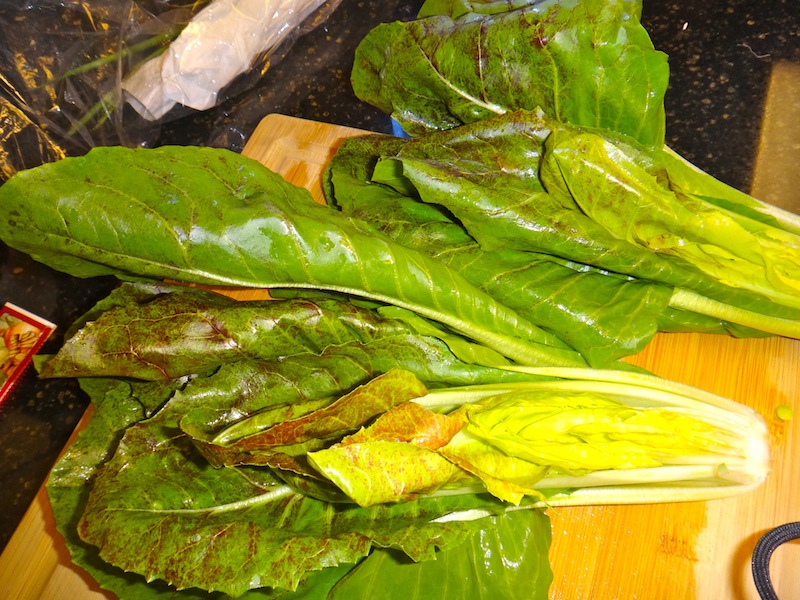 The CSA gave us some radicchio – but not your typical radicchio. This one looks like romaine or something, but is super bitter. It grills up nicely, and goes great with my basic balsamic dressing (see my “dressings” post). To counter the extra bitterness, I added some agave to the balsamic (about 1-2 t) and then drizzled the final bit with that super thick sweet balsamic you save for special occasions. That made the salad!