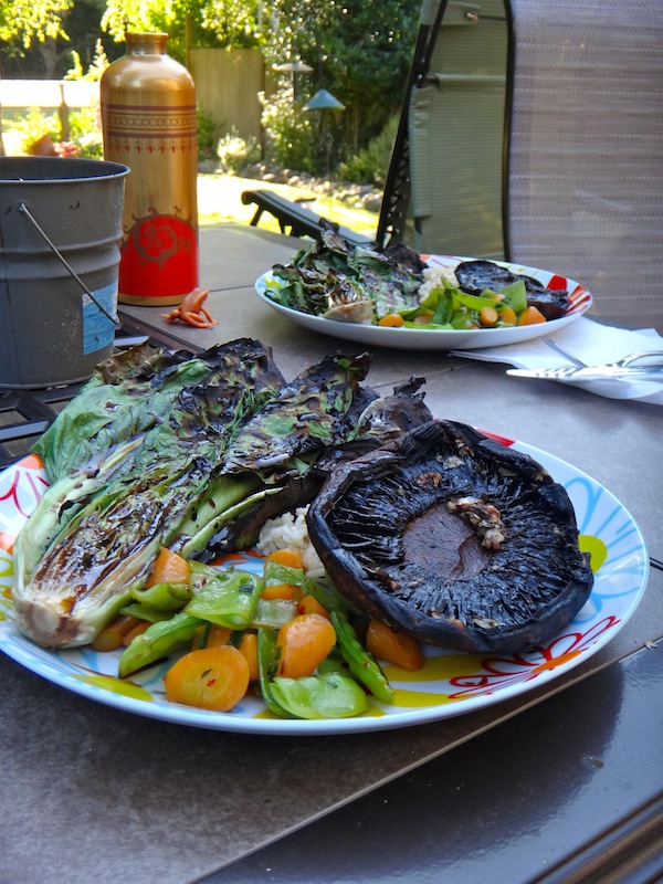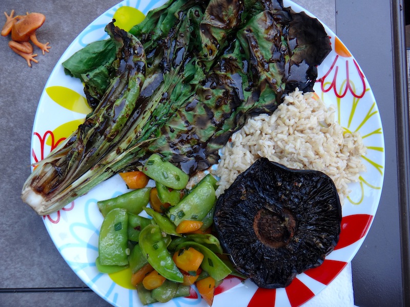 Steamed up some rice, and then also quick steam/sauteed some veggies (carrots and snow peas with fresh green onion) as the sides, and voila! Beautiful day for grilling and enjoying the outdoors.