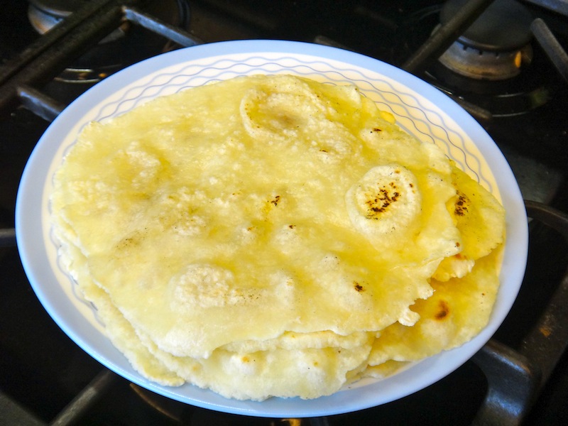 Stack ’em up as you complete them, and then use them wherever you would flour tortillas or flat breads or whatever! They actually taste like the real thing. It makes me happy. And the fact it’s so easy, I can’t believe I can’t buy this in the store. WTF, stores. Get on this. Right?