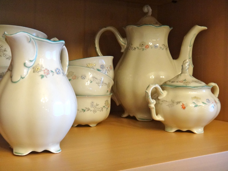 DSC01301  I also have various cut Czech crystal platters and glasses, a lovely salt and pepper holder from Chile (from a friend of my mom’s), a spice scooper from Malaysia (from my sister), my grandmother’sDSC01302 old coffee set, and other things I sprinkle around the house that have sentimental value to me. It’s a combination of the things I love most: family and food. 🙂