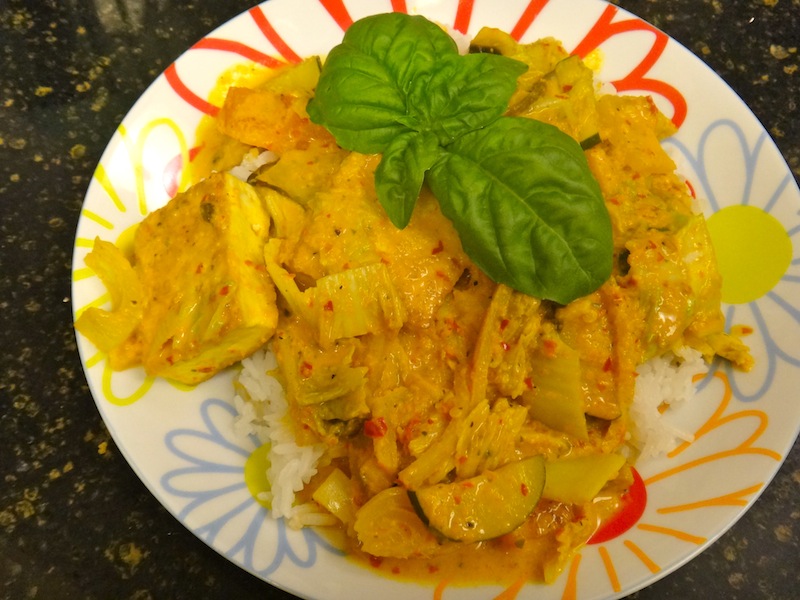 Yes – it’s the same curry you guys had when you came over. I’m glad you thought it was tasty! Hope you’re able to find some good Thai food close by!