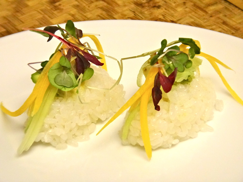 I essentially followed Morimoto’s recipe, which can be found here. You make a vinegar-water solution that you gently pour and cut/stir into the rice with a flat, bamboo (preferably) rice spoon-thing. For the vinegar water: