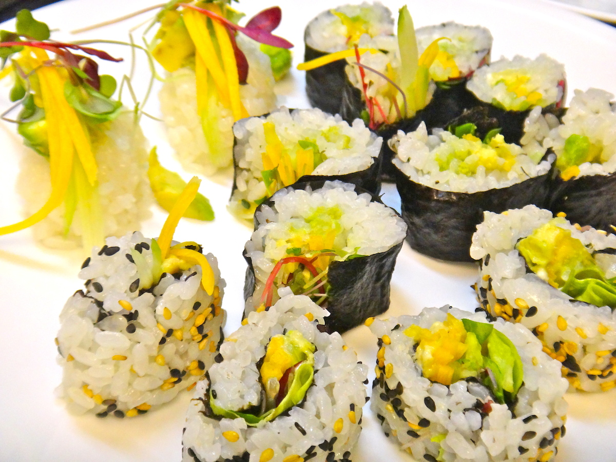 Serve with the traditional tamari as a dipper, and go to town. This is essentially a guilt-free meal (unless you tempura everything before rolling, ’cause a tempura avocado roll is to die for)!