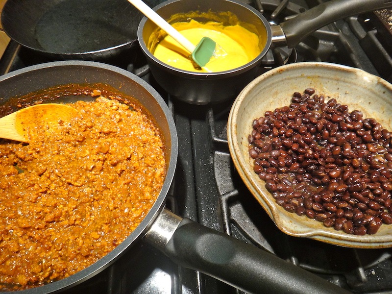 To make the taco meat, I used the unseasoned beef-free crumbles, but you can use the feisty crumbles, too.