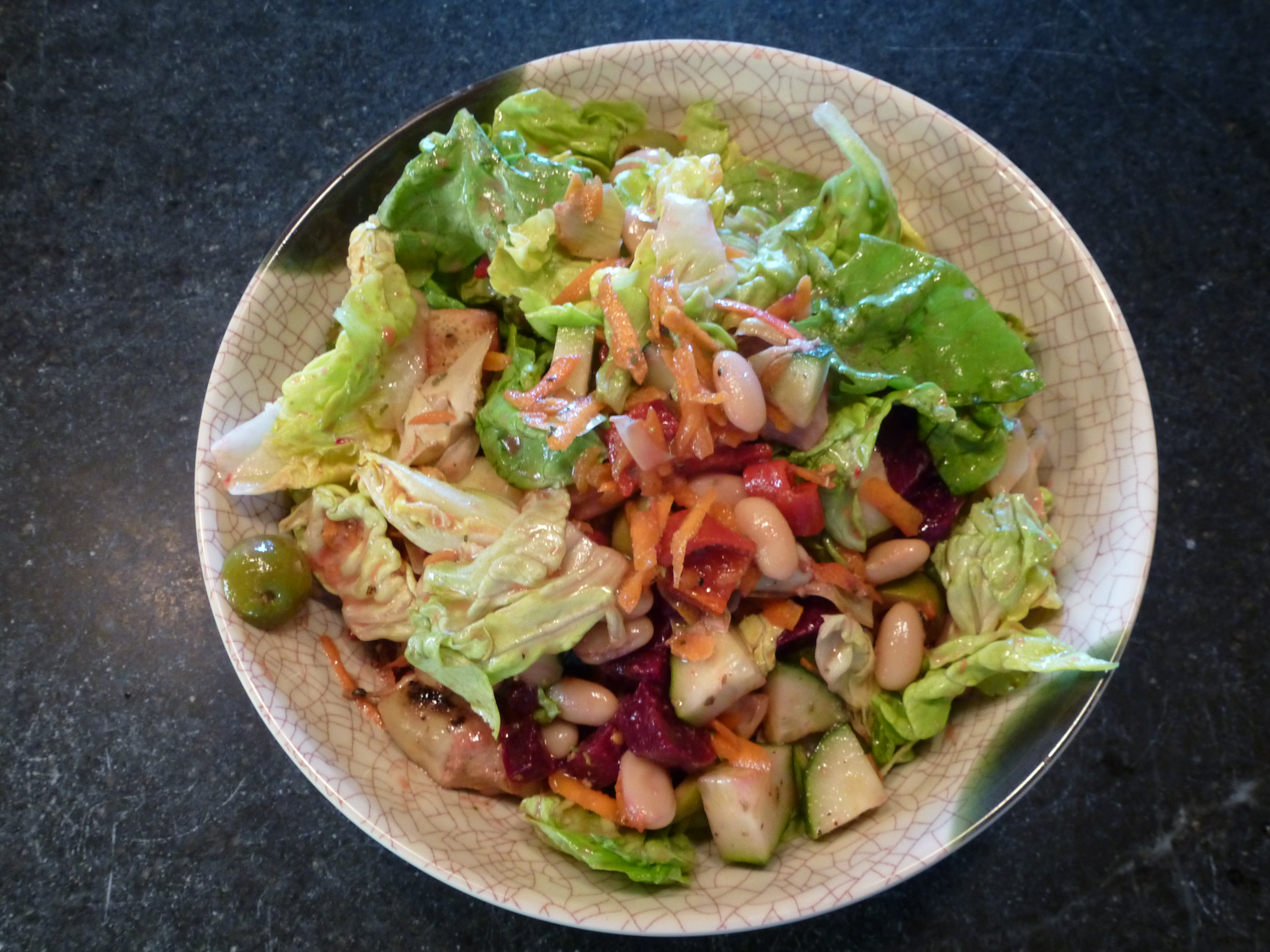 The dressing is a simple red wine vinaigrette: